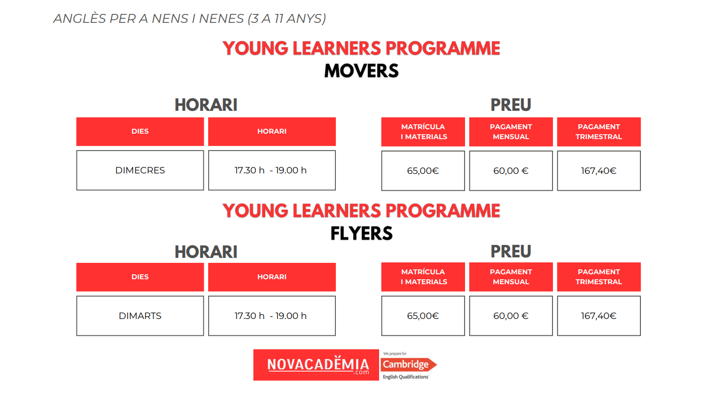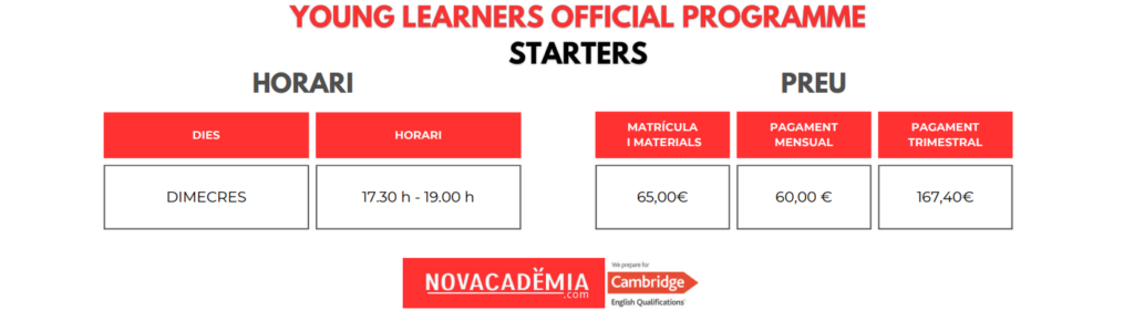 At NOVACADÈMIA we offer the 3 existing exams within this program: Pre A1 Starters, A1 Movers, and A2 Flyers.